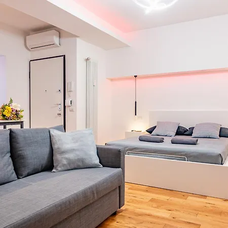 Exclusive Led House Corso Como tiene vistas al jardín y consta de una zona de estar con climatizador. Este apartamento está amueblado con esmero, dispone de un sofá, además de ventanas insonorizadas. La propiedad consta de 1 dormitorio. Se proporcionan 1 baño con un bidé, un inodoro separado de la ducha y bañera, así como secador de pelo y albornoces.